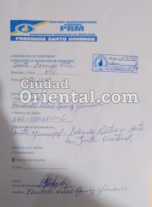 El documento está fechado el 12 de marzo de 2026 y corresponde a la zona número 1 de Santo Domingo Este, donde el dirigente busca ocupar la posición de Secretario General dentro de la estructura partidaria.