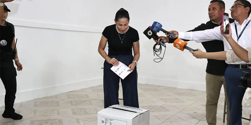 Candidata presidencial Luisa González ejerce su derecho al voto en Manabí, Ecuador