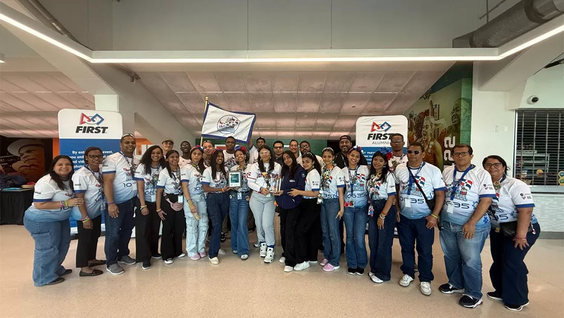 Florida, Estados Unidos.-Estudiantes del Team Merengue, representantes de varios centros educativos del sector público dominicano, ganaron el reconocimiento Team Spirit Award, en la FIRST Robotics Competition 2026, en el Watsco Center University of Miami Coral Gables, Florida.