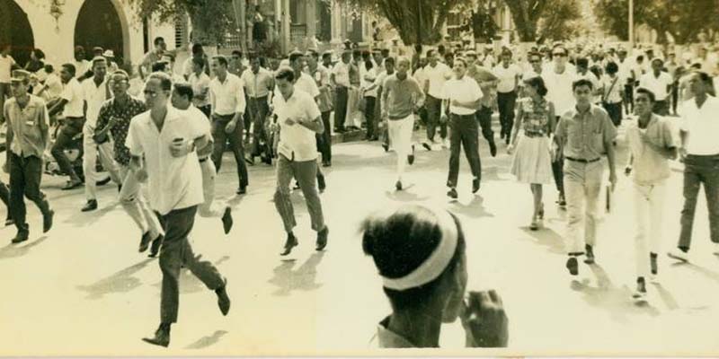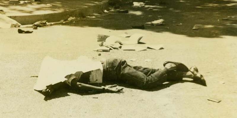 Acostados, boca abajo, sobre el asfalto caliente de la intersección de las calles, Dr. Báez y Moisés García Lluveres, cientos de estudiantes se protegían de las balas asesinas. A pesar del pánico creados por el incesante tableteo de las ametralladoras, estudiantes desde el suelo y en su retirada seguían gritando: ¡Go Home Yanquis! ¡Presupuesto para la UASD! ¡Fuera los yanquis de los planteles!