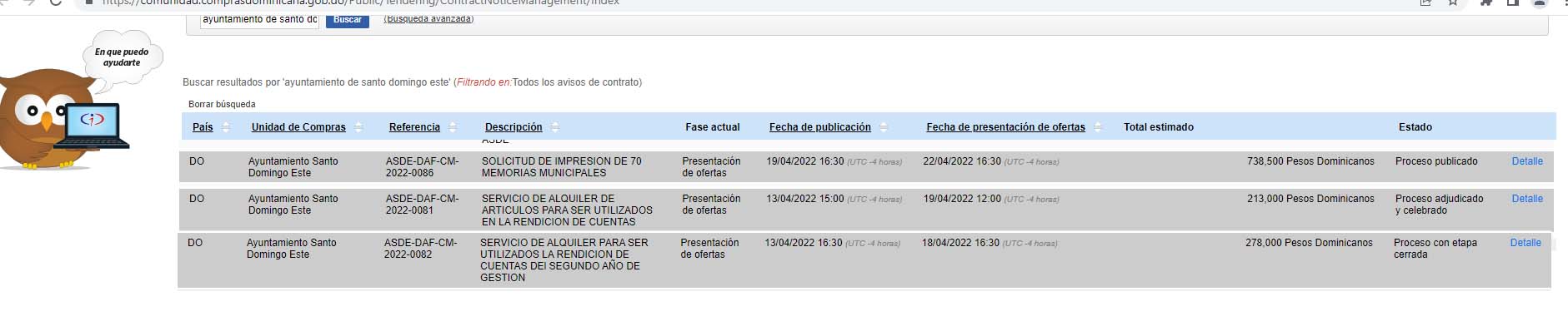 En total, la alcaldía ha publicado que gastará en esos actos RD$1,229,500, según consta en el portal de la Dirección de Contrataciones Públicas. en su sección abierta al público.