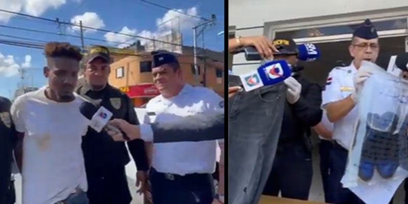 Las imágenes muestran el momento en que agentes de la Dirección Central de Investigación (DICRIM), junto a personal de la Policía Preventiva, trasladan al detenido hasta el Destacamento Ensanche Felicidad, en Los Mina, donde permanece bajo custodia.
