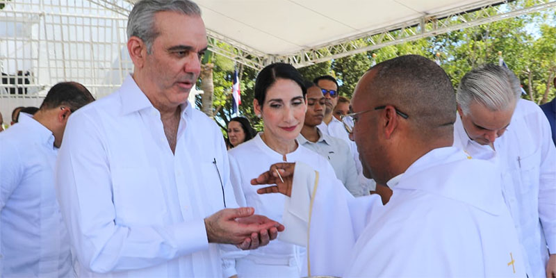 Santo Domingo.— El presidente Luis Abinader participó, junto a la primera dama Raquel Arbaje, a la ceremonia de creación canónica de la Diócesis de Stella Maris y a la ordenación e inicio del ministerio episcopal de su primer obispo, monseñor Manuel Antonio Ruiz de la Rosa.