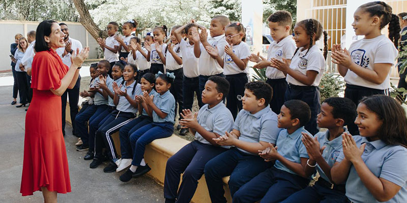 Primera dama Raquel Arbaje imparte clase de Moral, Cívica y Ética Ciudadana en escuela de Cristo Rey