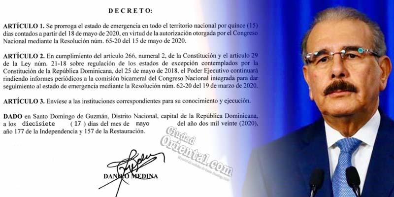 El Poder Ejecutivo amplía otros 15 días el estado de emergencia en RD