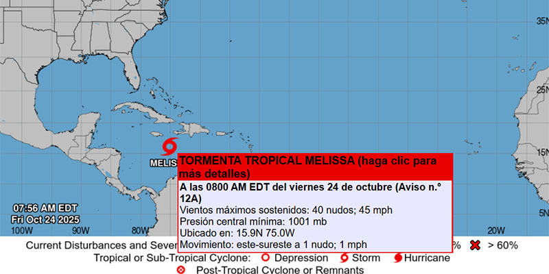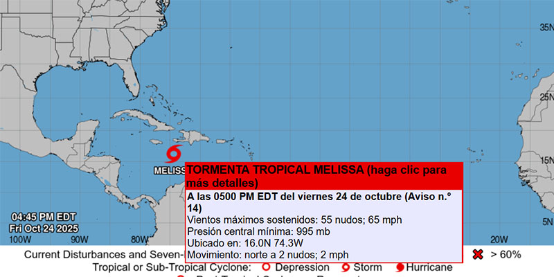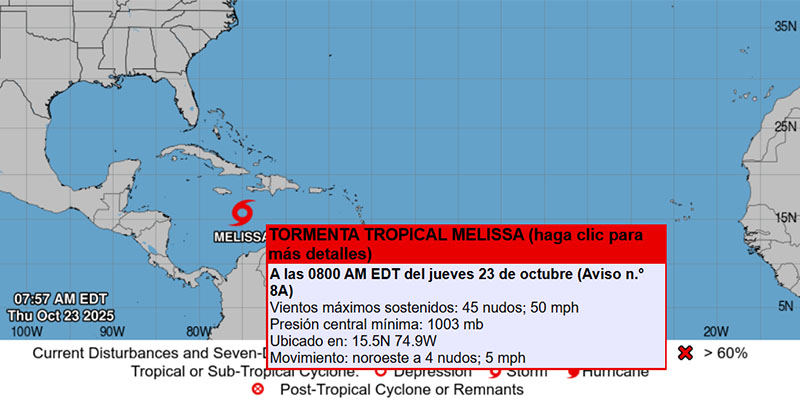 Melissa amenaza el Caribe: Jamaica en vigilancia de huracán y fuertes lluvias para La Española 23 octubre, 2025